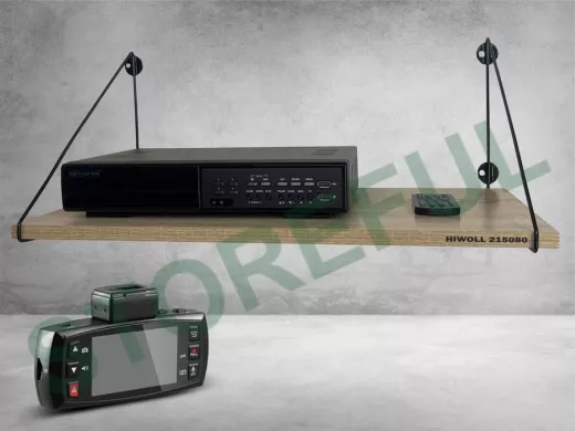 • Полка надежно крепится к стене при помощи анкеров или шурупов с дюбелями, на ней можно разместить видеорегистратор, монитор