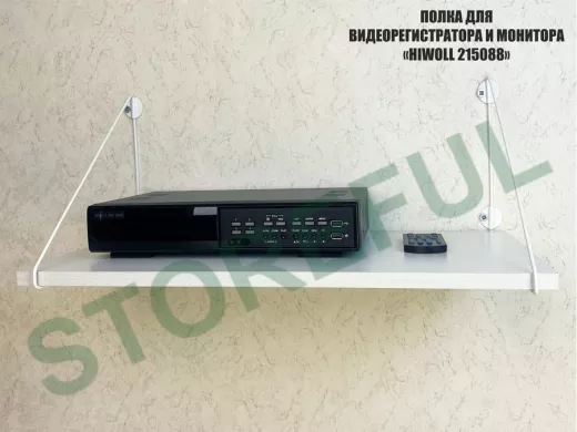 • Полка надежно крепится к стене при помощи анкеров или шурупов с дюбелями, на ней можно разместить видеорегистратор, монитор и многое другое
