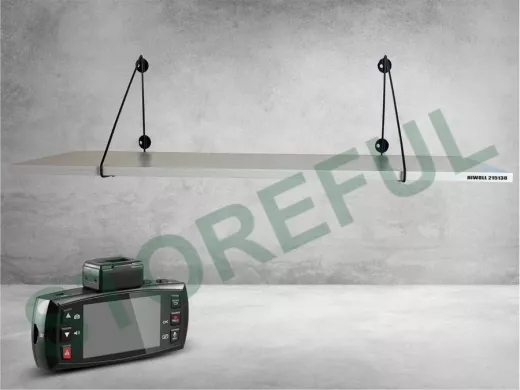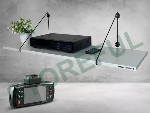 • Полка надежно крепится к стене при помощи анкеров или шурупов с дюбелями, на ней можно разместить видеорегистратор, монирот