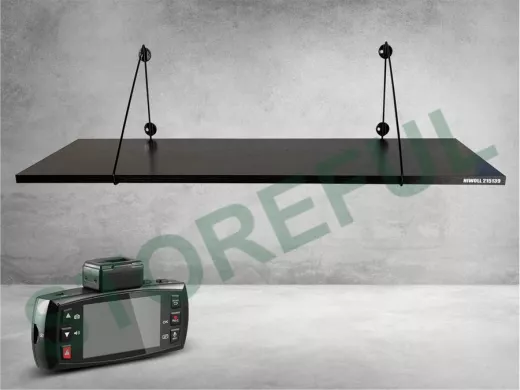 • Полка надежно крепится к стене при помощи анкеров или шурупов с дюбелями, на ней можно разместить видеорегистратор, монирот
