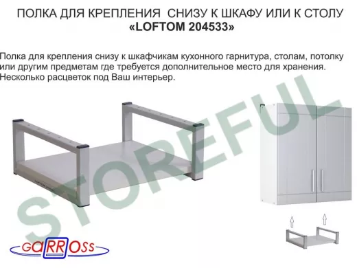Полка под шкаф, 15см, серая "LOFTOM 204533" крепление под стол, размер полки 30х40см, сосна