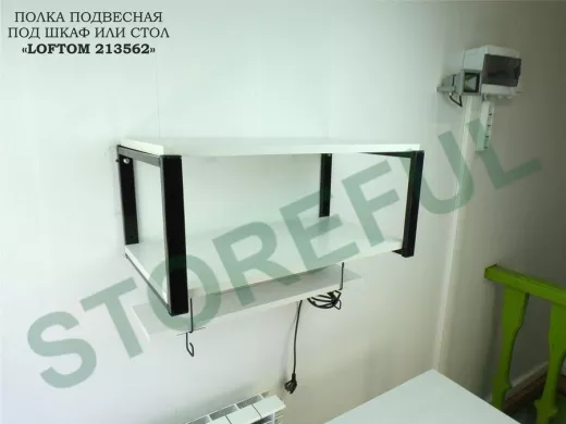 Полка подвесная под шкаф или стол черная, 60х15 см, сосна "LOFTOM 213562" высота 15см, с крючками