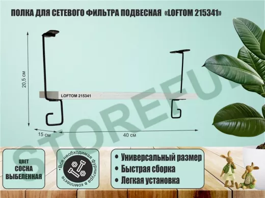 Полка для сетевого фильтра подвесная "LOFTOM 215341" 15х40см сосна выбеленная, с креплением шнура