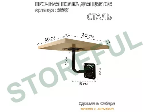 Полка для цветов настенная пьедестальная, размер 30х30см "LOFTOM-202947" цвет дуб сонома