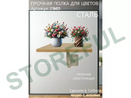 • Полка имеет надёжную конструкцию и может выдержать до 20 кг.
