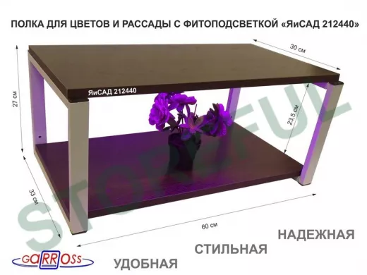 Полка для цветов и рассады с фитоподсветкой, высота 25см, серый "ЯиСАД 212440" 60х30, венге