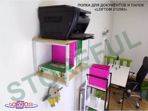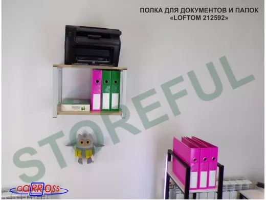 Полка для папок и документов, высота 38см серый "LOFTOM 212592" две полки 35х54см, дуб сонома
