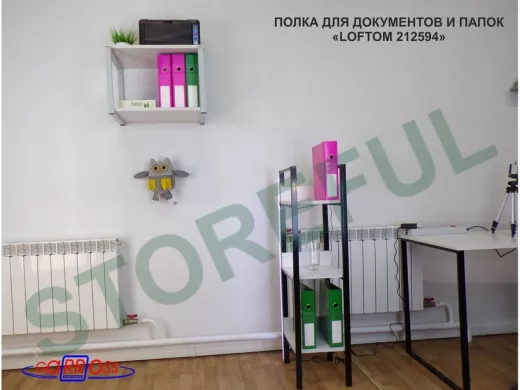 Полка для папок и документов, высота 38см серый "LOFTOM 212594"две полки 35х54см, сосна выбеленная