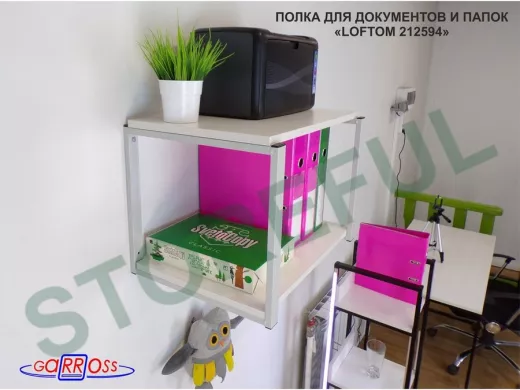В корзину Купить в 1 клик Полка для папок и документов, высота 38см серый "LOFTOM 212594"две полки 35х54см, сосна выбеленная