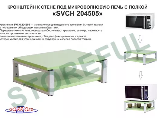 В корзину Купить в 1 клик Кронштейн для микроволновки, 17см серый "SVCH 204505" под микроволновую печь, полка 30х40, салатовый