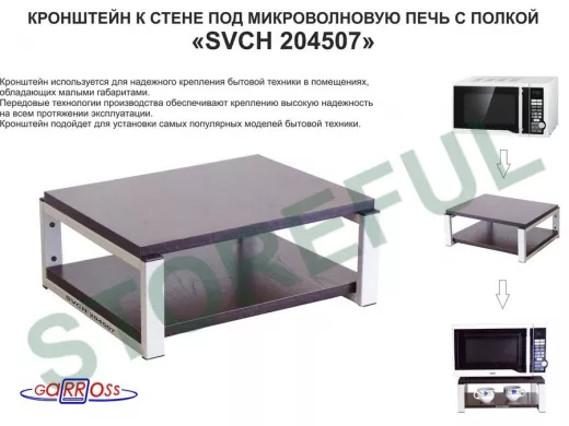 Кронштейн для микроволновки, 17см серый "SVCH 204507" под микроволновую печь, полка 30х40см, венге