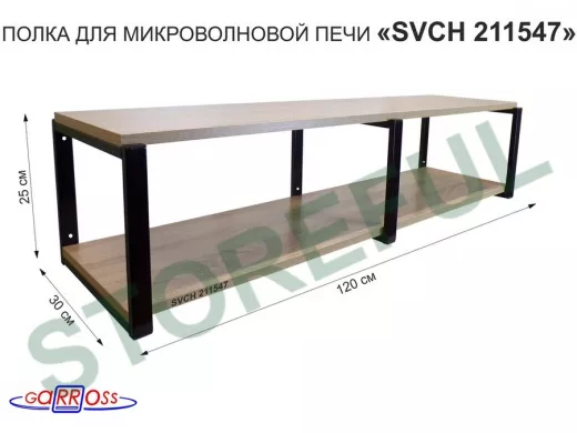 В корзину Купить в 1 клик Кронштейн для микроволновки, 27см черный, 2 полки 30х120см "SVCH 211547" под микров.печь,дуб сонома
