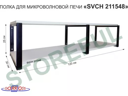 В корзину Купить в 1 клик Кронштейн для микроволновки, 27см черный, 2 полки 30х120см "SVCH 211548" под микроволнов.печь,сосна