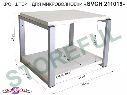 В корзину Купить в 1 клик Кронштейн для микроволновки, 27см серый "SVCH 211015" под микроволновую печь, полка 30х40, сосна