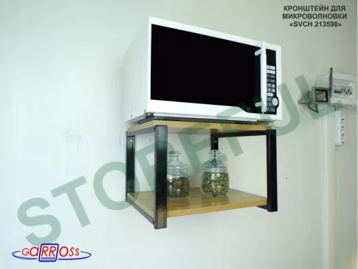 Кронштейн для микроволновки, 27см черный"SVCH 213598" под микроволновую печь, полка 30х40, дуб вотан
