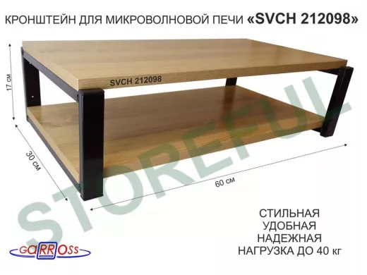 Кронштейн для микроволновки, 17см черный "SVCH 212098" под микроволновую печь,полки 60х30,дуб сонома