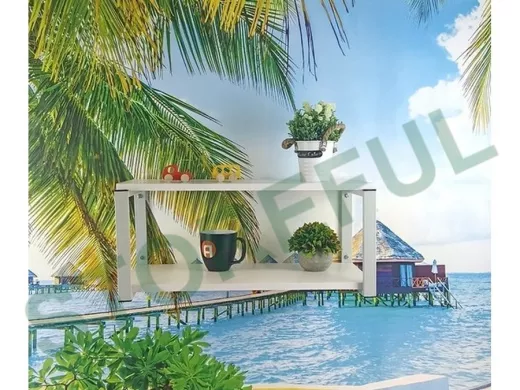 • Полка надежно крепится к стене при помощи анкеров или шурупов с дюбелями, на ней можно разместить микроволнрвую печь, кухонную технику, посуду, специи