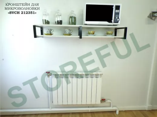 Кронштейн для микроволновки, 17см черный, 2 полки 30х120см "SVCH 212351" под микроволновую, сосна