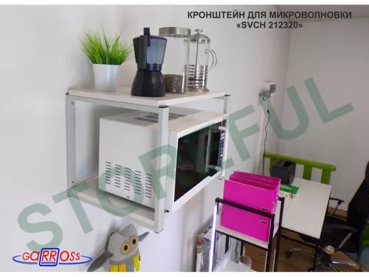 Кронштейн для микроволновки, 38см серый "SVCH 212320" две полки 35х54см, сосна выбеленная