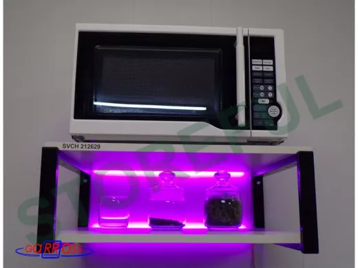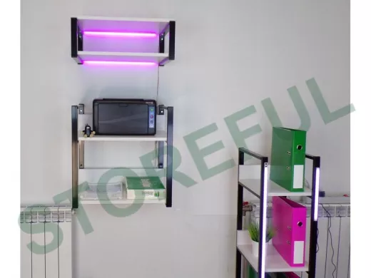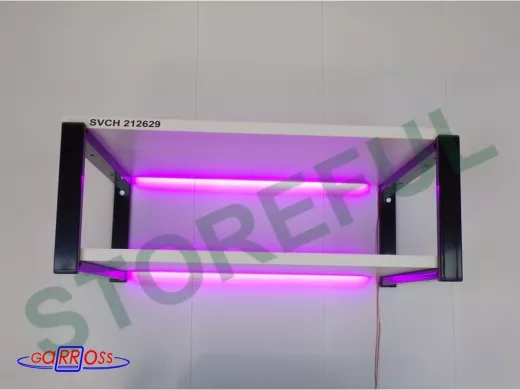 • Подсветка розового цвета сдвоенная для двух полок, её можно устанавливать в любое место, направляя