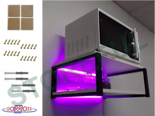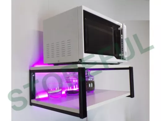 Кронштейн для микроволновки с розовой подсветкой, 21см черный "SVCH 212629" две полки 35х54см, сосна