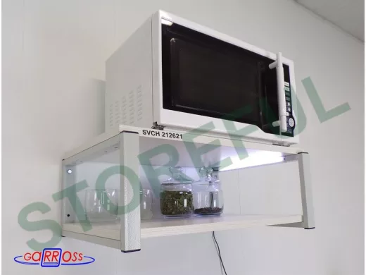 Кронштейн для микроволновки с подсветкой, 21см серый "ПолкаКрепка-212621"две полки 35х54см, сосна