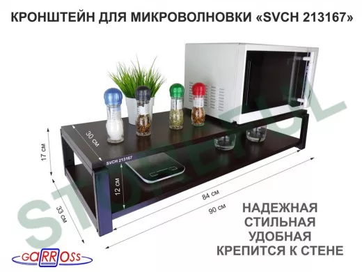 Кронштейн для микроволновки, 17см чёрный "SVCH 213167" под микроволновку,две полки 90х30, венге