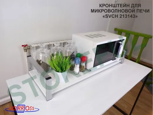 Кронштейн для микроволновой печи, 15см серебристый "SVCH 213143" полка 90х30, сосна выбеленная