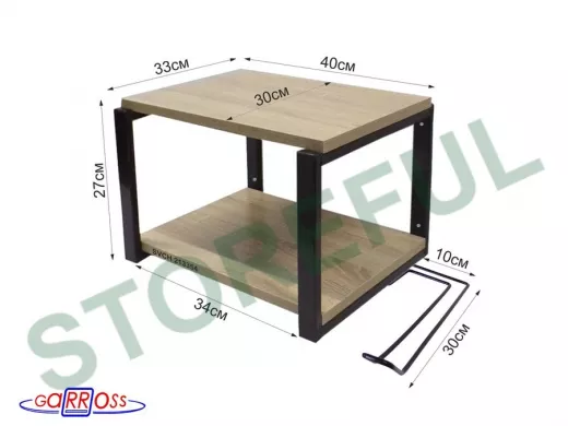 • Каркас изделия выполнен из высокопрочного металла. Полка изготовлена из ламинированного ДСП