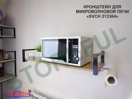 В корзину Купить в 1 клик Кронштейн для микроволновой печи, 15см чёрный "SVCH 213364" полка 90х30, дуб, держатель полотенц.