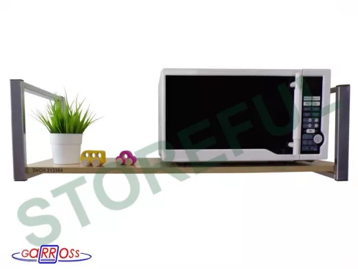 • Полка надежно крепится к стене при помощи анкеров или шурупов с дюбелями, на ней можно разместить микроволнрвую печь, кухонную технику, посуду, специи