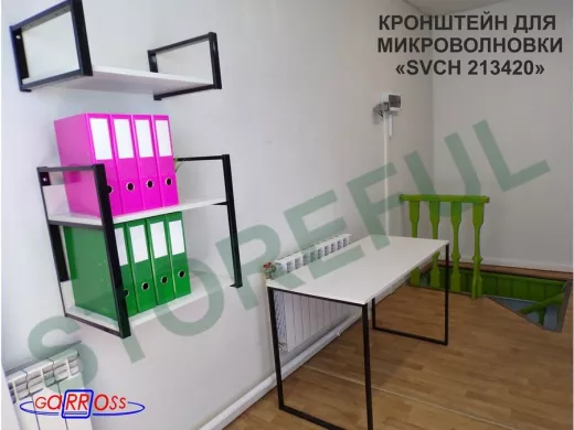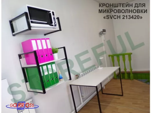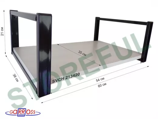 Кронштейн для микроволновки, 21см чёрный "SVCH 213420" одна полка 35х60см, сосна