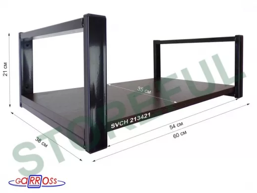 Кронштейн для микроволновки, 21см чёрный "SVCH 213421" одна полка 35х60см, венге