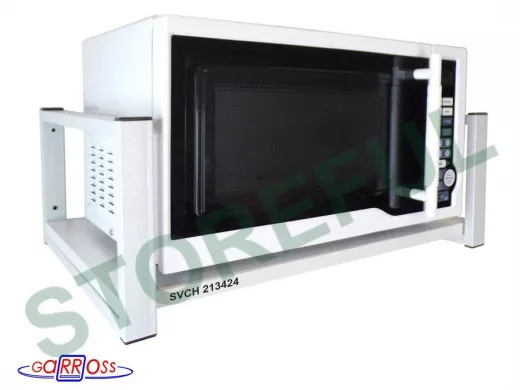 • Полка надежно крепится к стене при помощи анкеров или шурупов с дюбелями, на ней можно разместить микроволновую печь, кухонную технику, посуду, специи