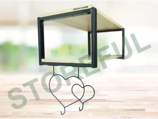 • Полка надежно крепится к стене при помощи анкеров или шурупов с дюбелями, крючки в виде двух сердец, крепятся к полке шурупами.