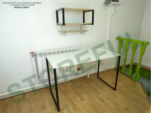 • Полка надежно крепится к стене при помощи анкеров или шурупов с дюбелями, на ней можно разместить микроволновую печь, кофемашину, тостер идр.кухонную технику, посуду, специи, различные необходимые мелочи