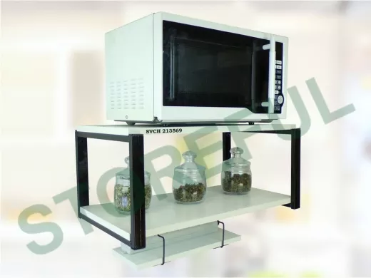• На верхней полке можно разместить микроволновую печь или другую кухонную технику, на средней отлично "встанет" посуда, баночки под сыпучее и многое другое, а нижняя полка отлично подойдет для специй, таймера или маленьких сувениров