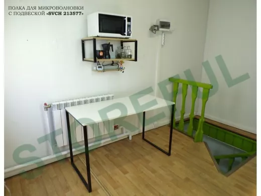 Полка для микроволновки 60x30см с подвеской 40x15см, 27см, черный "SVCH 213577" , дуб