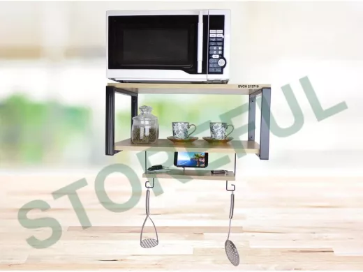 В корзину Купить в 1 клик Полка для микроволновой печи с держателем телефона, 27см черный "SVCH 213710", 60х30, дуб сонома