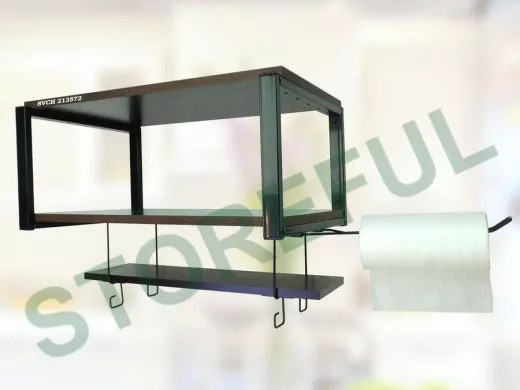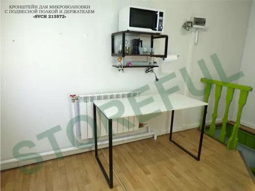 Полка для микроволновки с подвесной полкой, 27см, черный "SVCH 213572" 60х30см, венге, держатель