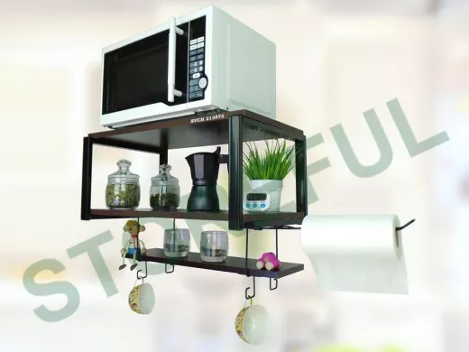 • На верхней полке можно разместить микроволновую печь или другую кухонную технику, на средней отлично "встанет" посуда, баночки под сыпучее и многое другое, а нижняя полка отлично подойдет для специй, таймера или маленьких сувениров