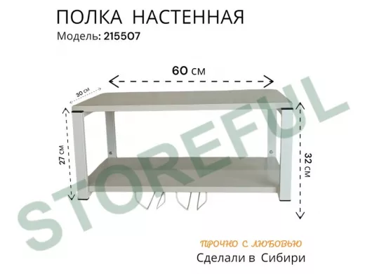 • Полка имеет надёжную конструкцию и может выдержать до 30 кг