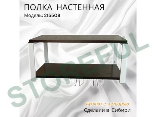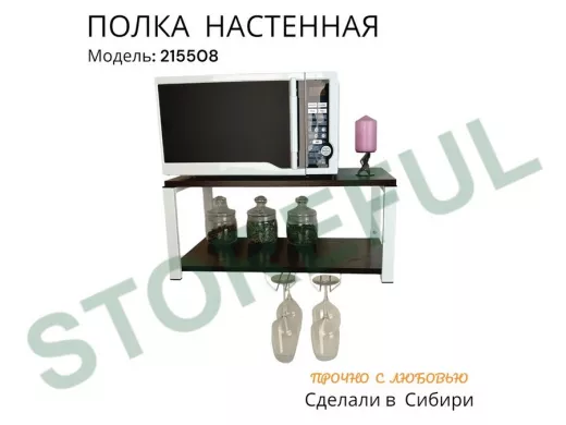 Полка c двумя бокалодержателем для микроволновки "SVCH 215508" 60х30см, белая, венге