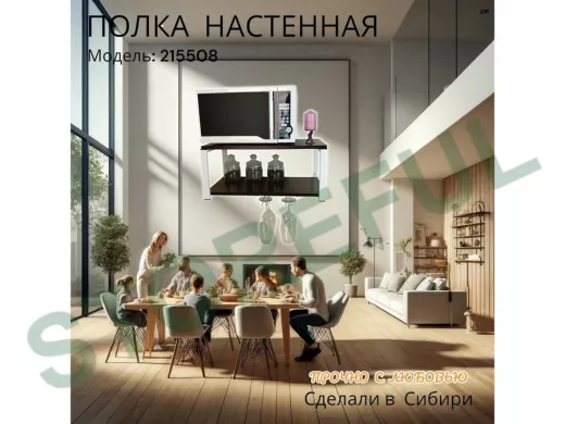 В корзину Купить в 1 клик Полка c двумя бокалодержателем для микроволновки "SVCH 215508" 60х30см, белая, венге