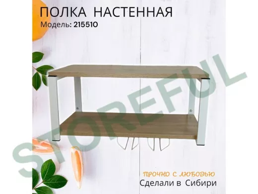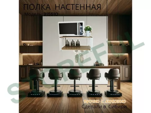 В корзину Купить в 1 клик Полка c двумя бокалодержателем для микроволновки "SVCH 215510" 60х30см, белая, дуб сонома