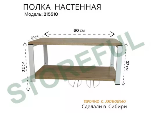 • Полка имеет надёжную конструкцию и может выдержать до 30 кг