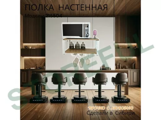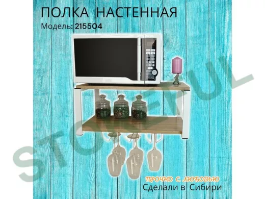 В корзину Купить в 1 клик Полка c тремя бокалодержателями для микроволновки "SVCH 215504" 60х30см, белая, дуб сонома