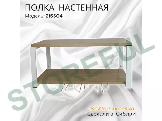 Полка c тремя бокалодержателями для микроволновки "SVCH 215504" 60х30см, белая, дуб сонома