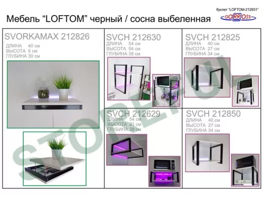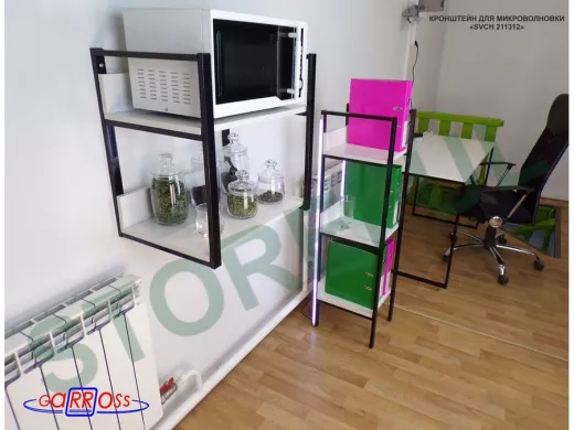В корзину Купить в 1 клик Кронштейн для микроволновки, 54см чёрный "SVCH 211312" две полки 35х54см с бортиком,сосна выбеленная