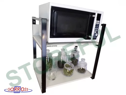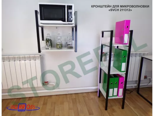 Кронштейн для микроволновки, 54см чёрный "SVCH 211312" две полки 35х54см с бортиком,сосна выбеленная